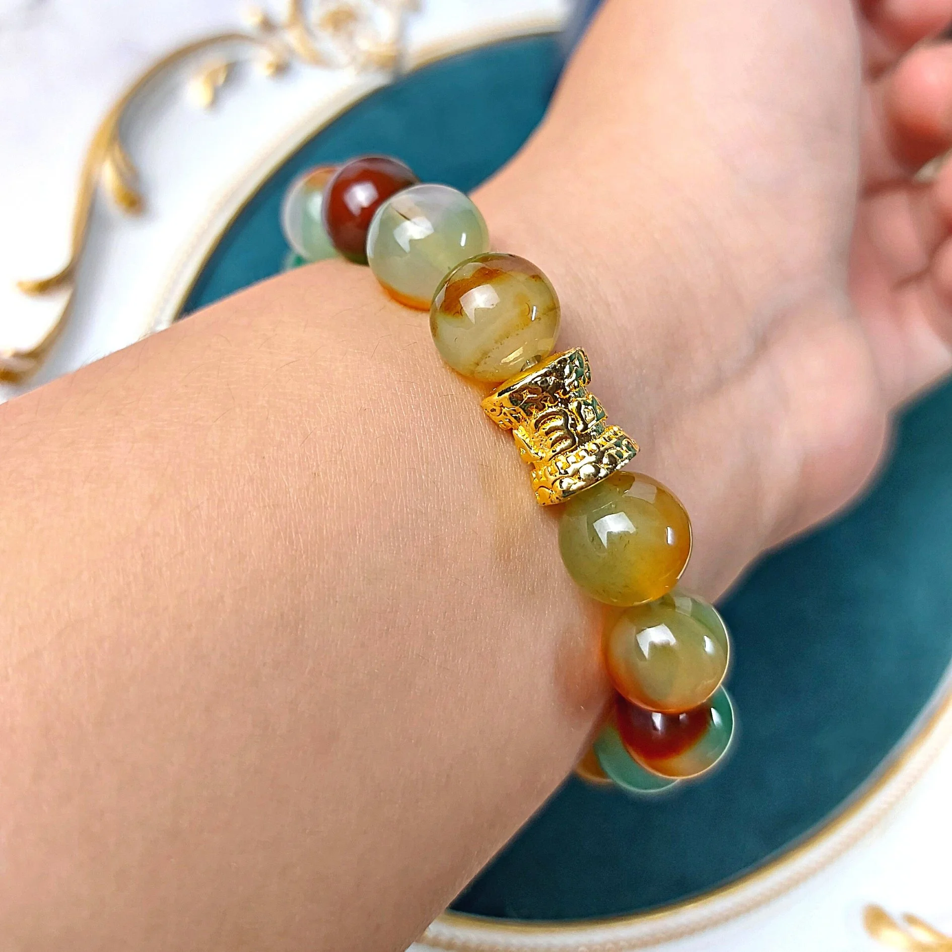 Vòng tay đá Mã Não tứ quý 12 li phối charm lu thống mạ vàng Phong cách đơn giản, nhẹ nhàng, lịch sự